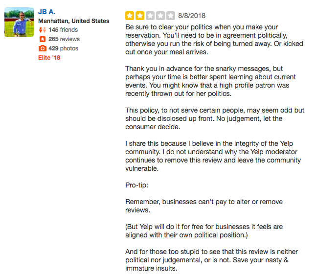 Most review sites are unmoderated. That is to say: anyone can post virtually anything. You only have to look at Yelp…